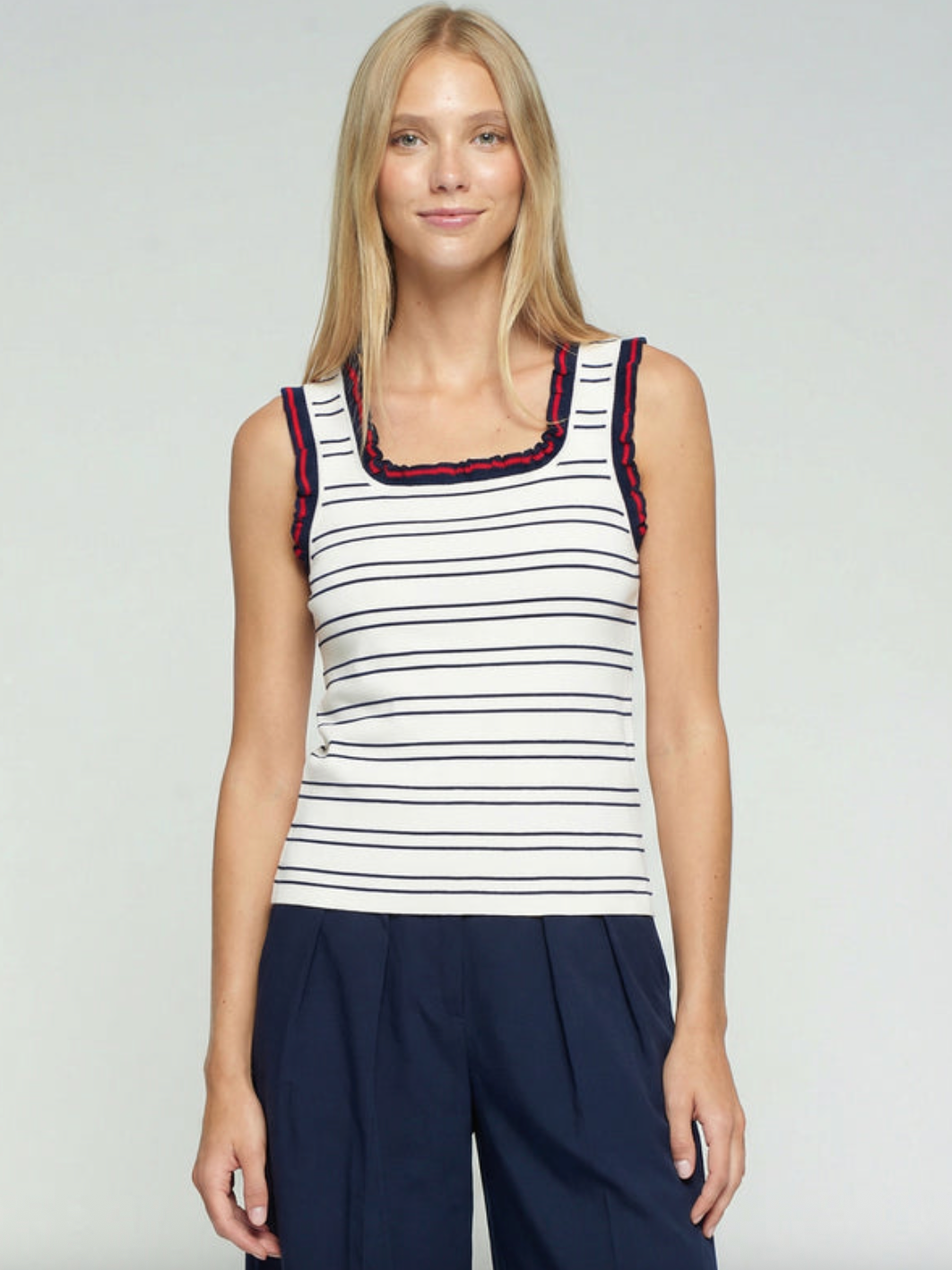 Ruffle Tank in Navy & Red