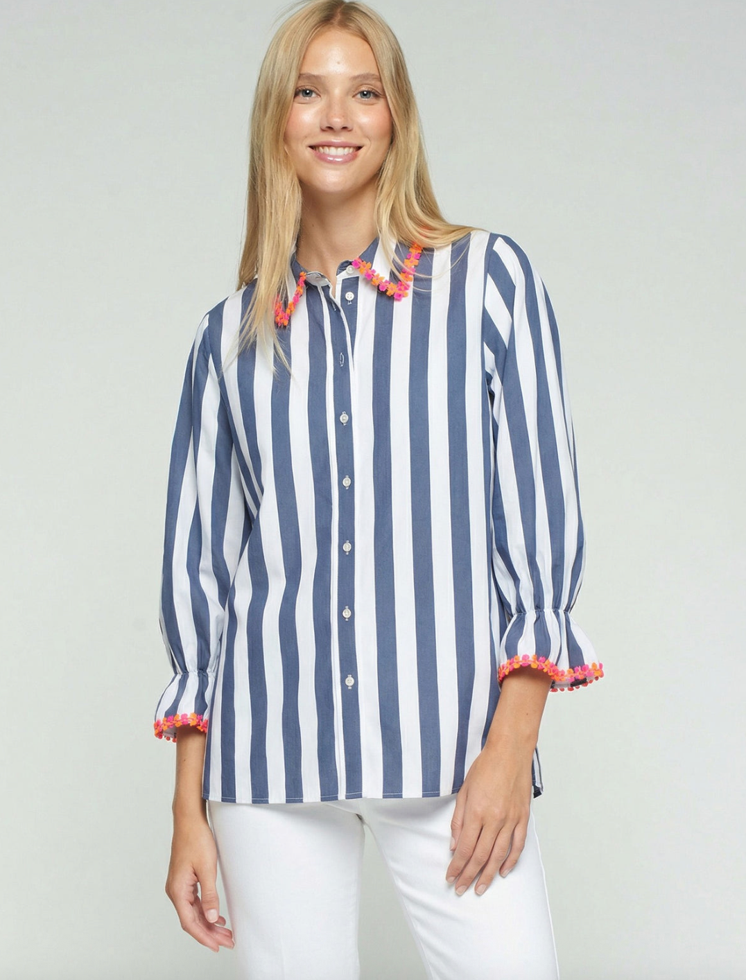 Stripe Button Up W/ Neon Trim
