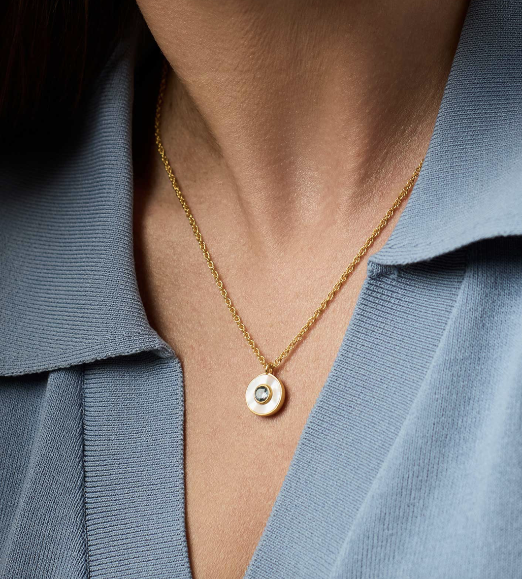 Colette Circle Delicate Necklace in Chalcedony Blue