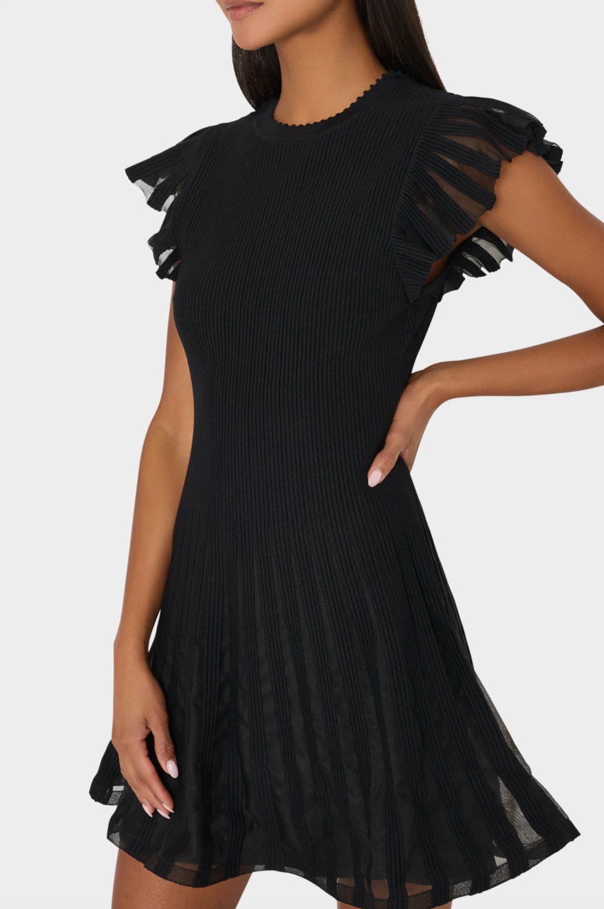 Sheer Flutter Sleeve Knit Dress
